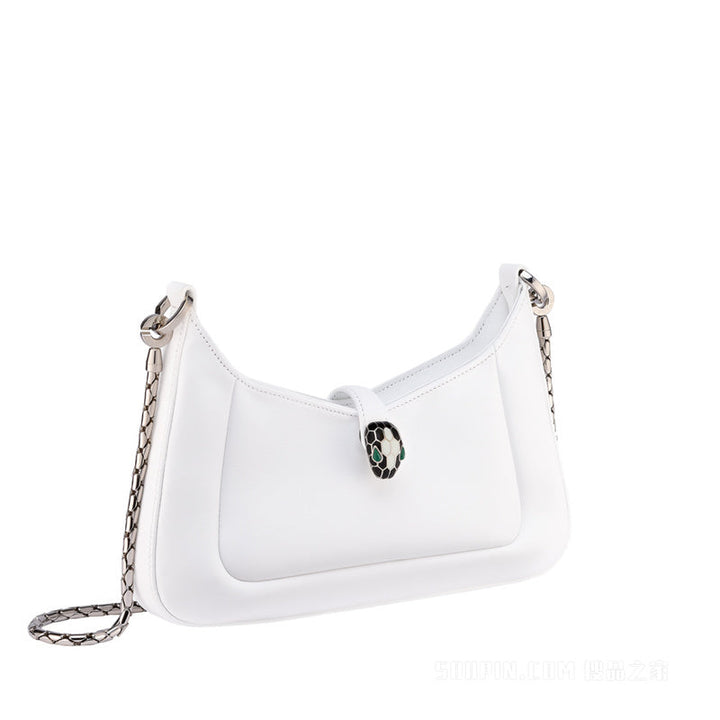 Le petit sac à bandoulière de la série Serpenti Forever Bay est fabriqué en cuir de veau métropolitain pur tourmaline rose rouge doux et résistant à l'usure, utilisant des techniques modernes et simples pour interpréter de manière exquise des chefs-d'œuvre intemporels. Le sac à main est polyvalent et polyvalent, ajoutant un charme tendance aux looks de jour. Il est équipé de deux chaînes épaisses amovibles en forme de serpent et d'un dispositif de chaîne supplémentaire pour étendre la bandoulière à volonté, permettant une variété de méthodes de port. La pièce est ornée de l'emblématique fermoir magnétique à tête de serpent, dont les écailles et le design séduisants s'inspirent de la collection de bijoux Serpenti des années 1960. Doté d'un compartiment unique avec fermeture zippée sur le dessus, d'une poche intérieure plate ouverte et du logo BULGARI en métal au dos. 27,5 x 18 x 4,5 cm - 10,8 x 7,1 x 1,8 pouces. fabriqué en Italie.