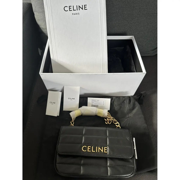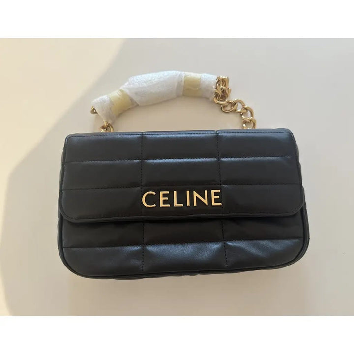 BANDOULIÈRE CELINE AVEC CHAÎNE EN MATELASSE UNIE EN MATELASSÉ... NOIR 23,5 COMPARTIMENT UNE POCHE INTÉRIEURE PLATE RÉFÉRENCE : 111273EYD.38NO ..