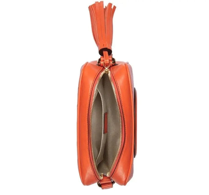 Gucci a puisé dans ses archives pour créer l'écusson Interlocking G qui orne le sac Gucci Blondie Small. Ce modèle compact est fabriqué en Italie en cuir lisse marron et est doté de pampilles latérales et d'une bandoulière réglable.