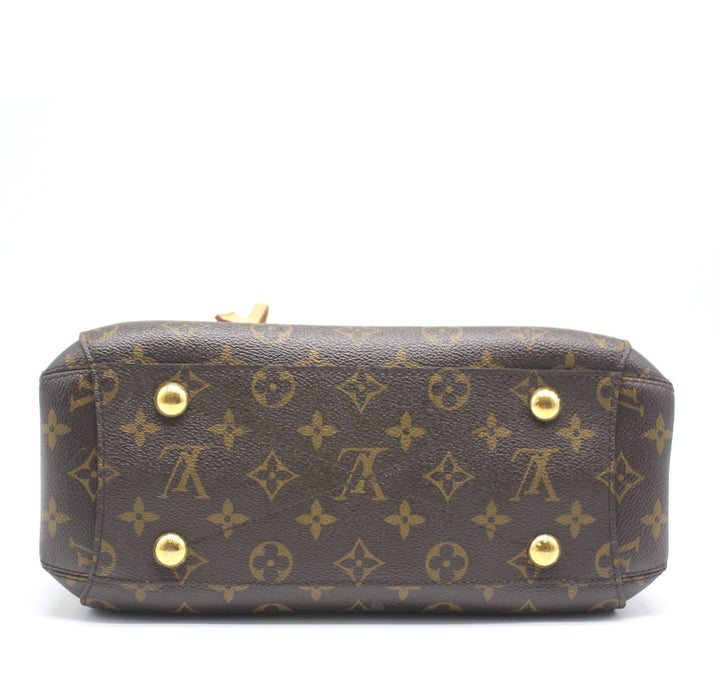 | The Montaigne BB bag in iconic Monogram canvas combines a smart, structured exterior with a spacious, well-organized interior, making it ideal for business. It can be carried in the hand, on the arm or across the body for a trendy look, thanks to its extra-long removable strap. | Exterior Material: Monogram exterior with removable cross-body strap, natural cowhide leather trim and protective bottom studs. Interior Material: Burgundy microfiber lining with one central zippered compartment, two wide compartments, one double BB pocket and one flat pocket. Accessories:  Dust Bag;  |