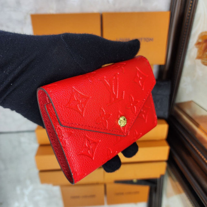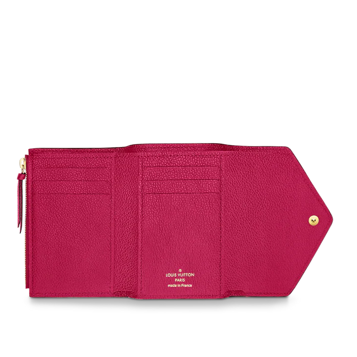 Le portefeuille Victorine, skay souple Monogram Empreinte, a été spécialement conçu pour créer un petit portefeuille avec la capacité d'un grand portefeuille. Recouvert d'une couche protectrice, le skay résiste aux rayures, aux abrasions et à la décoloration. Ce portefeuille compact et pratique se glisse facilement dans n'importe quel sac à main.