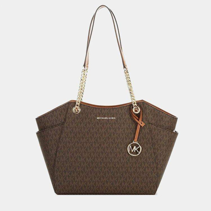 Michael Kors Brown Signature and Leather Jet Tote Bag