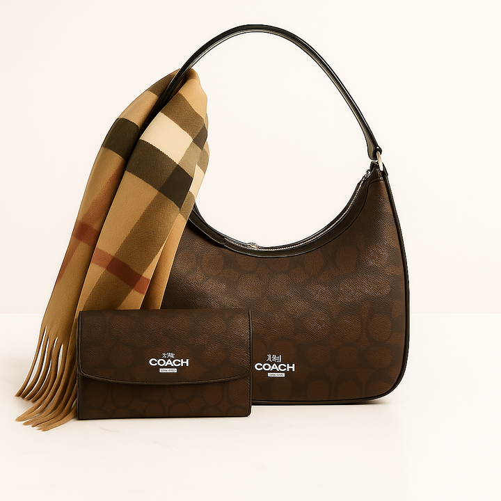 Pack Coach – Sac + Portefeuille + Écharpe Burberry Cachemire