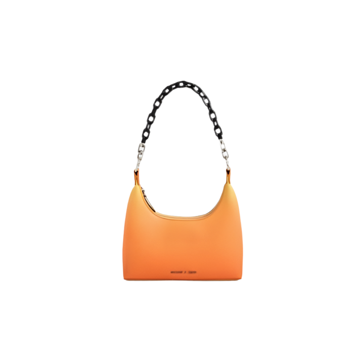 This elegant shoulder bag features a distinctive Koi chain handle and a captivating orange gradient design. Crafted for both style and practicality, it offers ample space for essentials in a compact form. The unique color transition ensures a standout accessory for any occasion. Elevate your ensemble with this chic and versatile handbag.