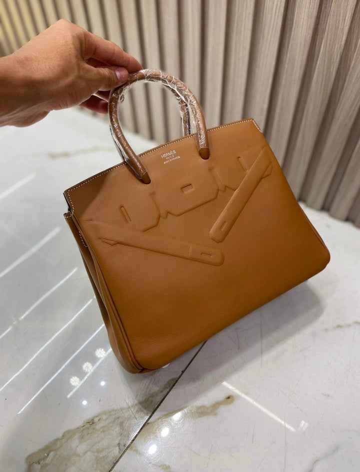 Sac à main Hermes Birkin Shadow 25 cm en cuir Swift Marron