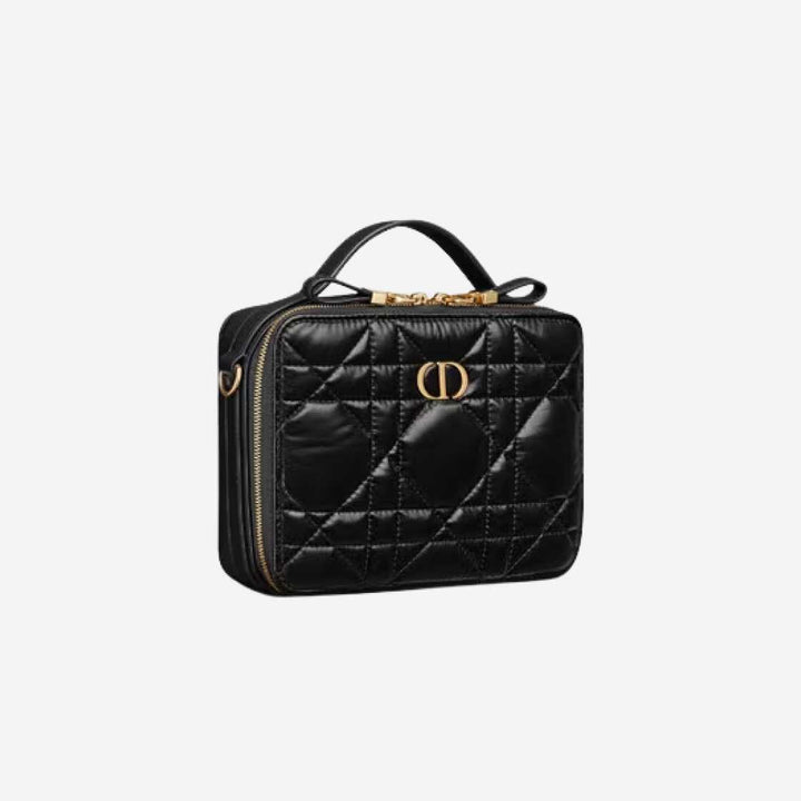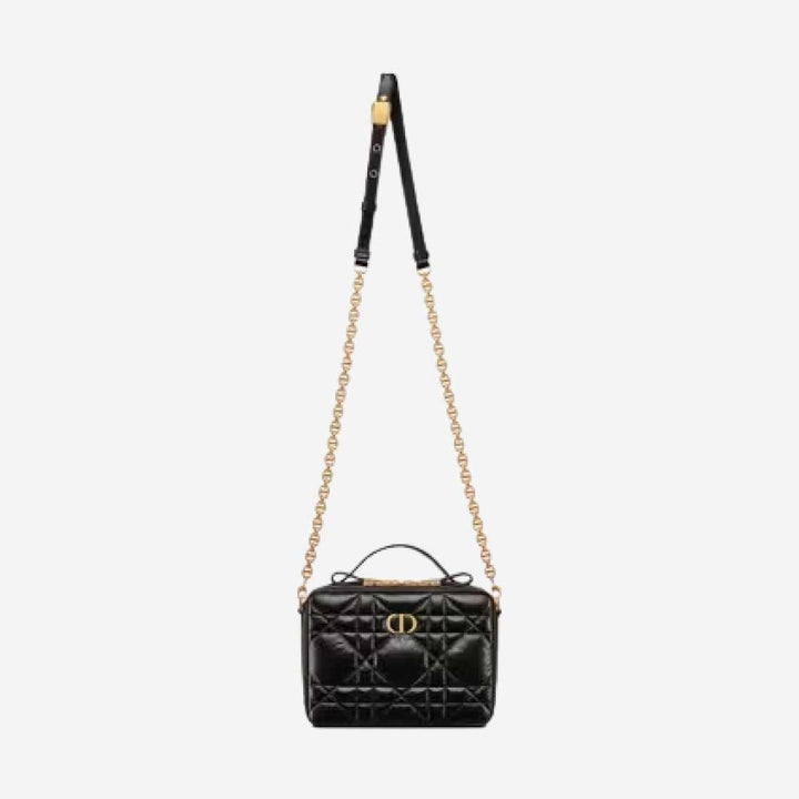 Le sac box Dior Caro est une création moderne signée Maria Grazia Chiuri. Confectionné en cuir de veau noir, il se démarque par l'originalité de l'effet du matelassage des coutures Macrocannage et un compartiment spacieux, complété de trois fentes pour cartes, pour accueillir tous les essentiels du quotidien. La bandoulière chaîne amovible dispose d'un empiècement en cuir pour un porter confortable et ajustable aussi bien à l'épaule que crossbody, tandis que la poignée offrira un porter main.
