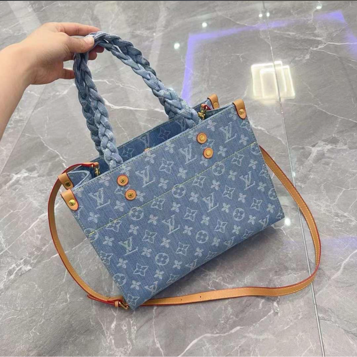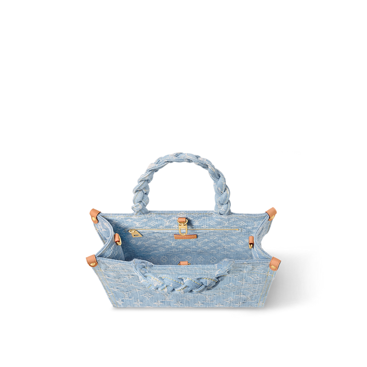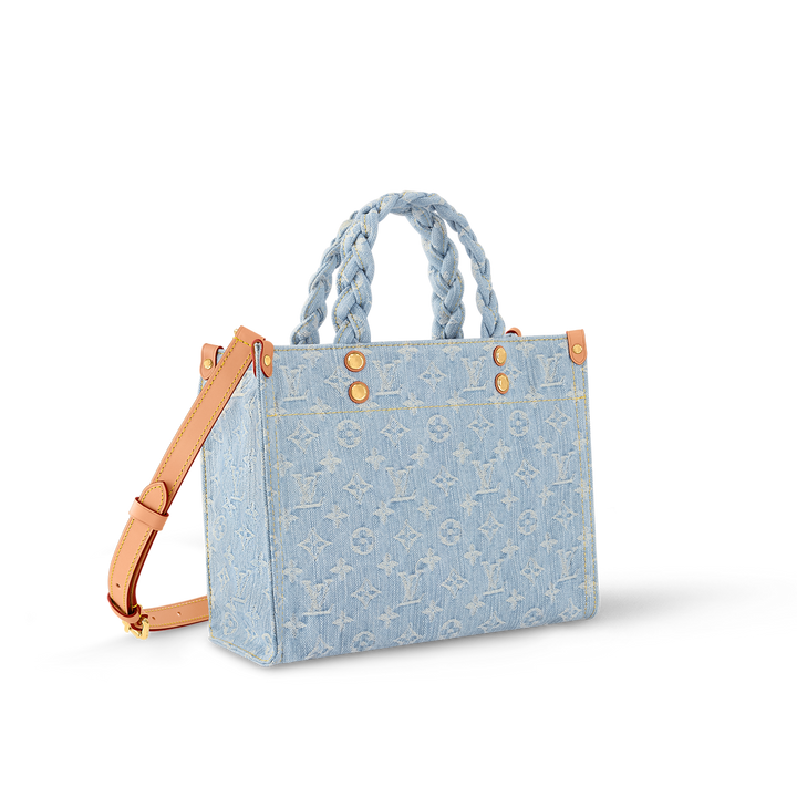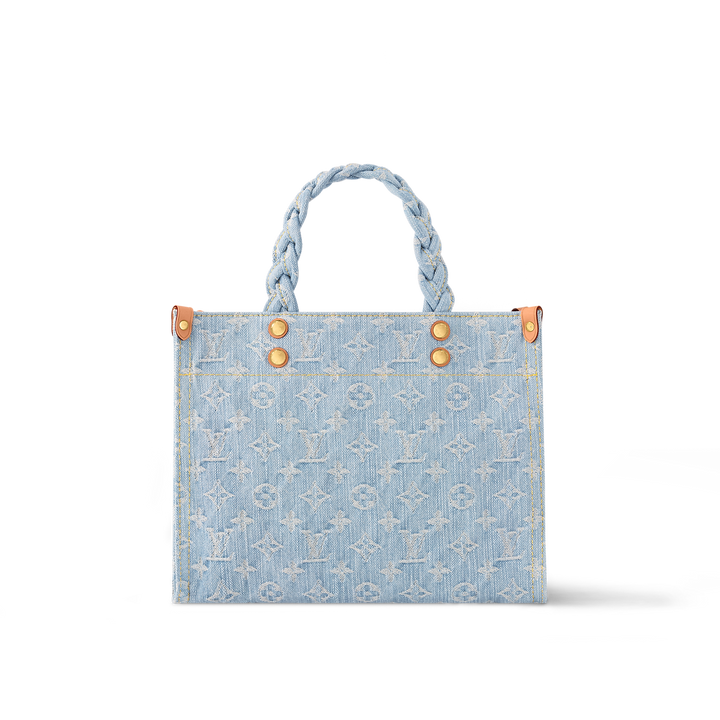 Plein de charme, ce sac Let Go PM habillé de denim Monogram s'inspire du cabas OnTheGo. Le coloris délavé à la pierre et les poignées tressées lui prêtent un esprit estival. Assez spacieux pour accueillir un portefeuille et un téléphone, ce modèle souple et agréable à porter s'agrémente de coins en cuir de vache ponctués de rivets.