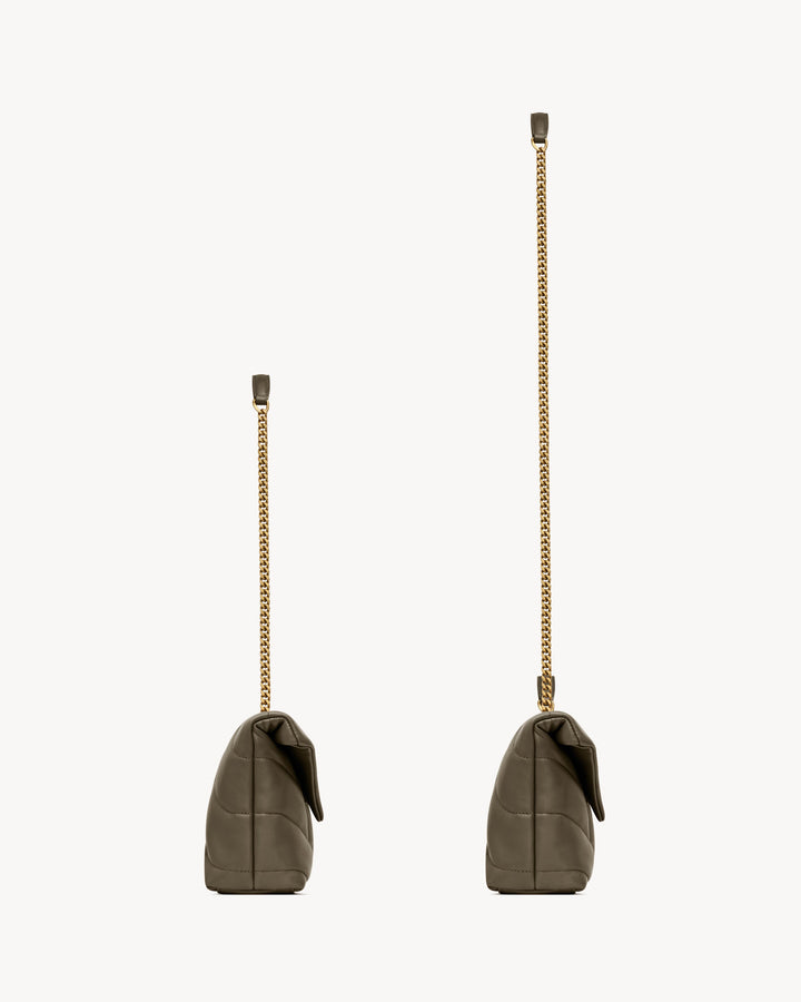 EN CUIR D’AGNEAU NAPPA MATELASSÉ D’UN CHEVRONS SOUPLE, SA CHAÎNE COULISSANTE PERMET UN PORTÉ À L’ÉPAULE OU CROISÉ.